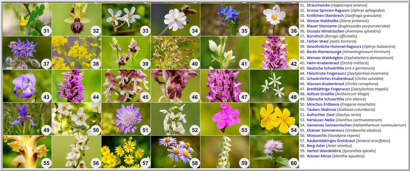 Tipp zur Suchfunktion: Wähle z.B. die Seite Orchideen. Für PC-Nutzer: Markiere eine Art, wähle die Tastenkombination STRG+F (ctrl+F) oder ein Klick auf die 3 Punkte oben rechts und "suchen und bearbeiten" - "suchen" wählen. Mit dem Handy ist es ähnlich-tippen Sie auf die 3 Punkte dann "Auf der Seite suchen".