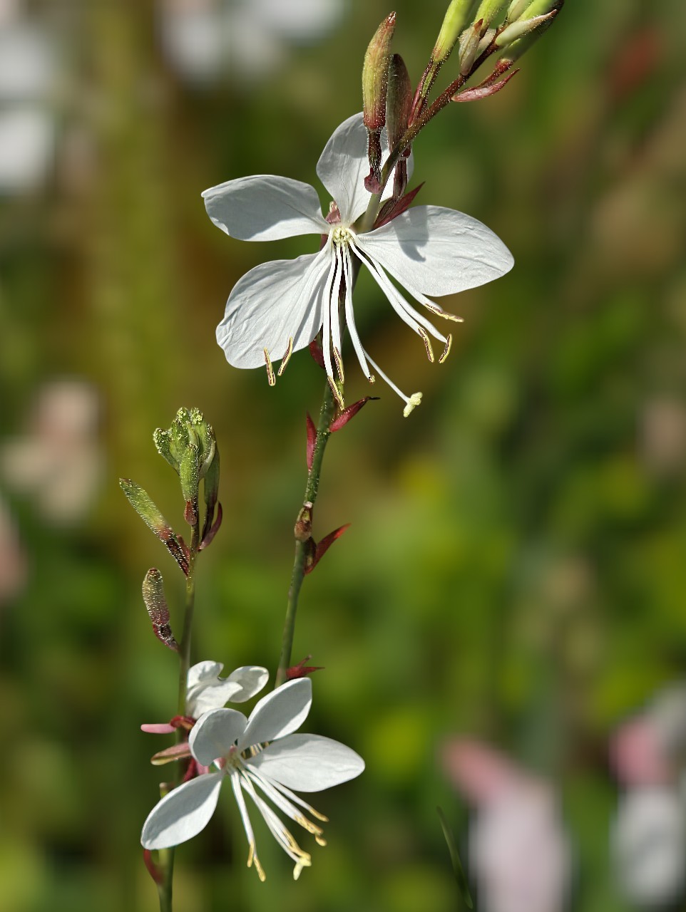 Die "Lindheimer-Prachtkerze" (Oenothera lindheimeri (Engelm. & A. Gray) W. L. Wagner & Hoch) ist auch ein "Einwanderer. Die Blütezeit erstreckt sich vom Frühjahr bis zum ersten Frost. Aufgenommen am Berenberg-Ostseite an einem Ackerrand.
