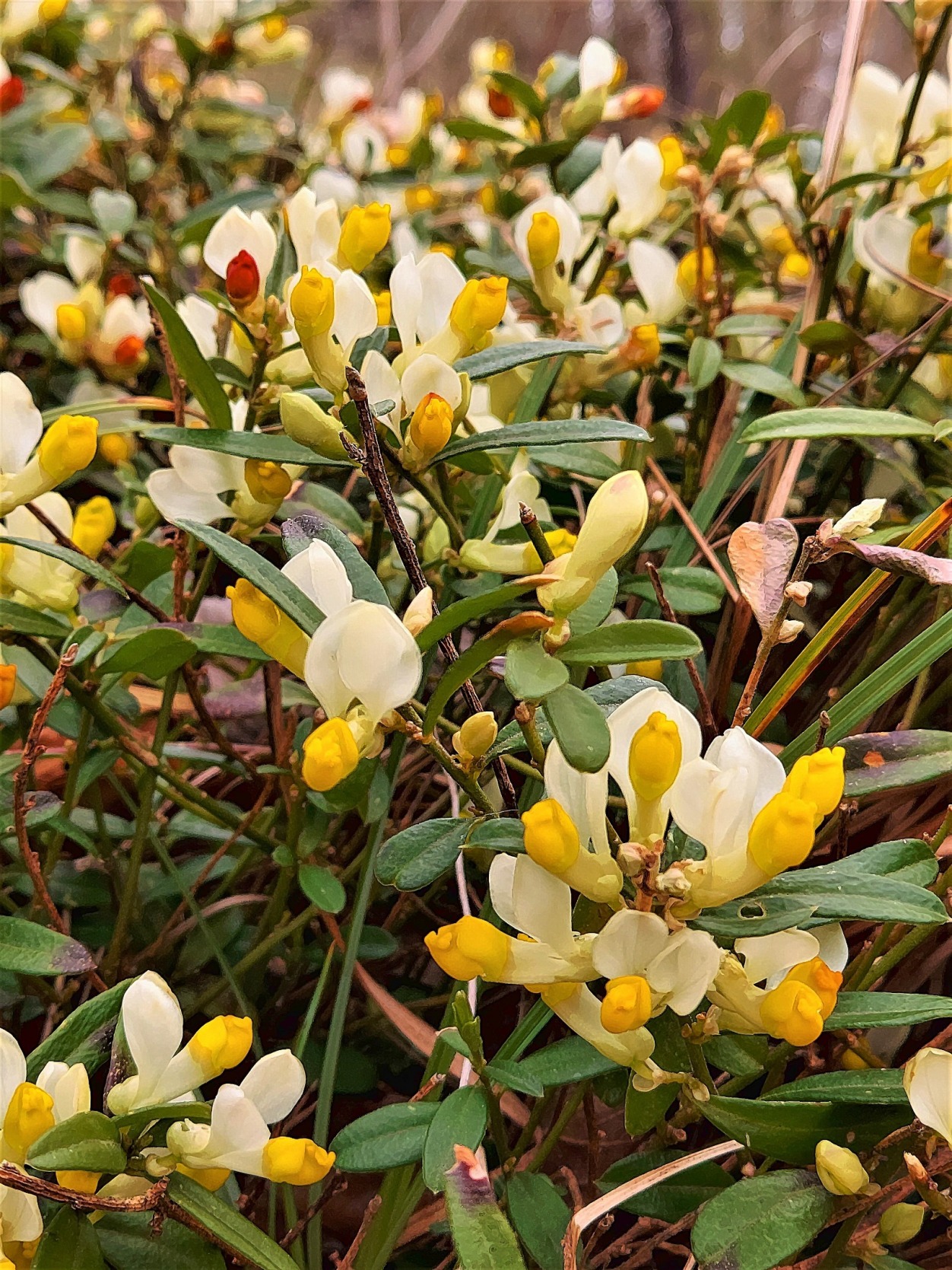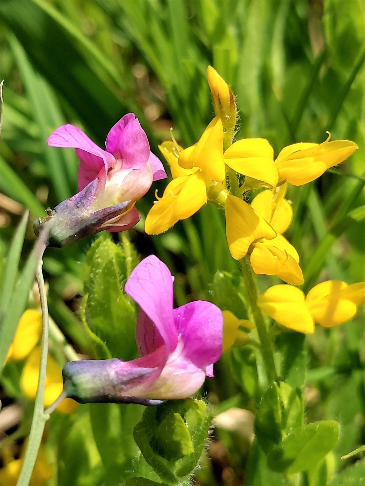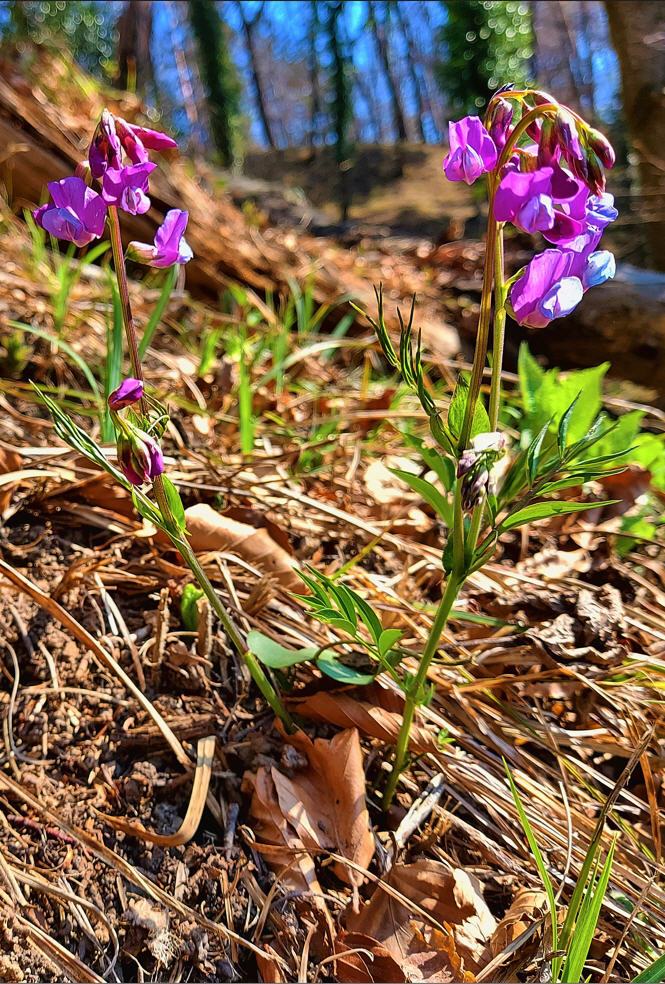 Berg-Platterbse von Eglisau (Lathyrus linifolius) Blütezeit: April bis Juli. (mit Deutschem Ginster)..