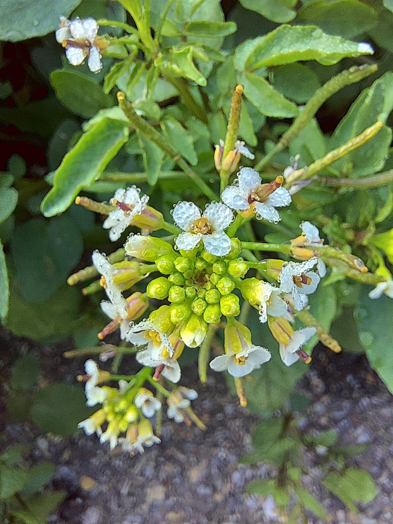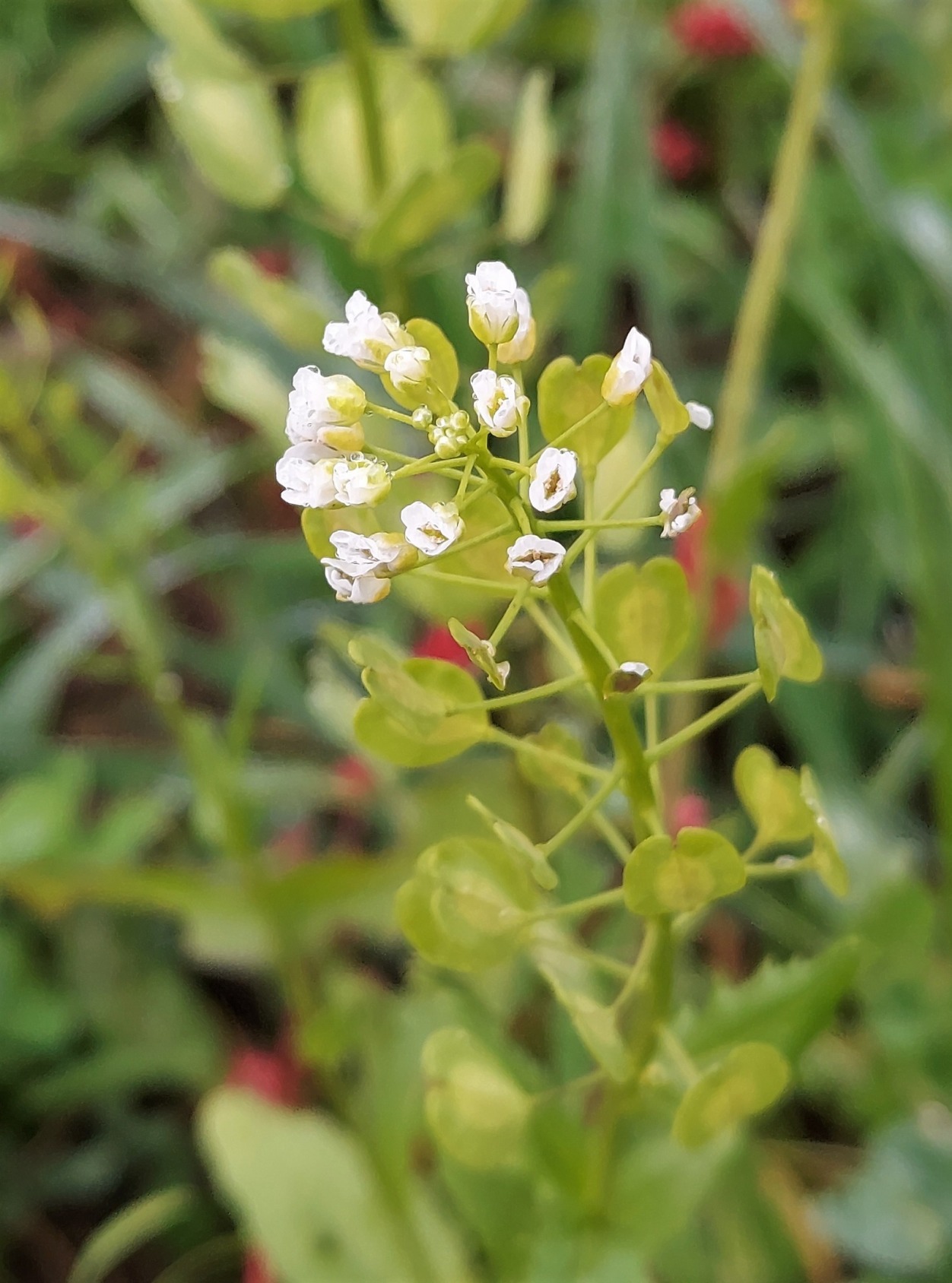 Acker-Hellerkraut auch Acker-Täschelkraut (Thlaspi arvense). Dachsen
