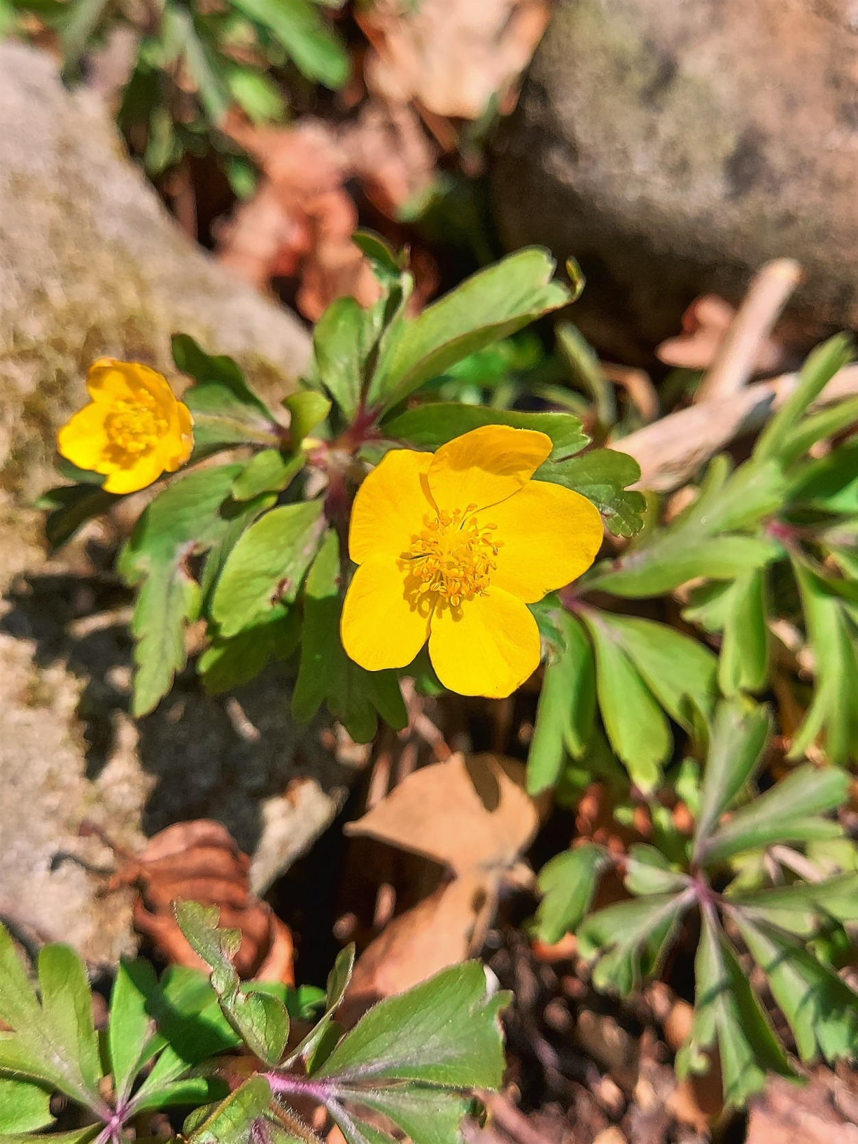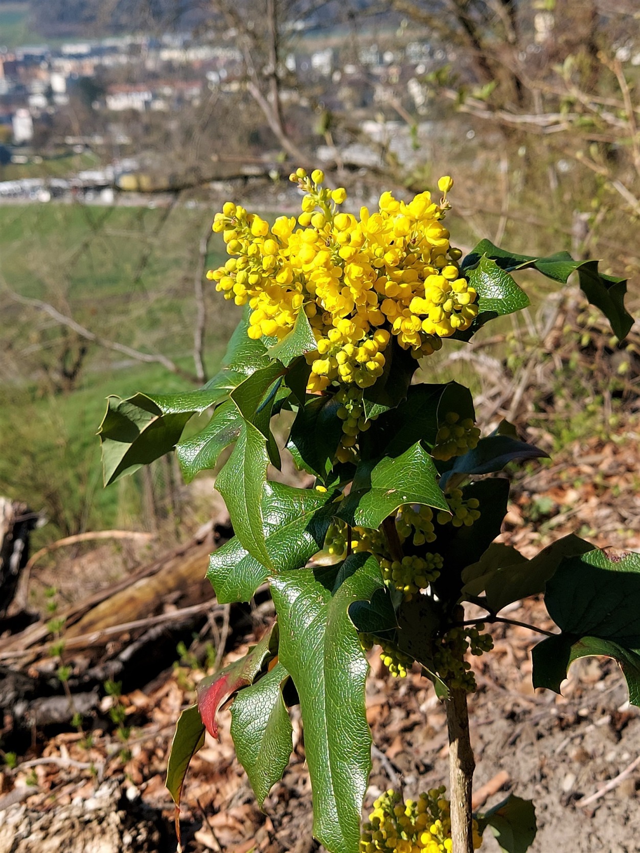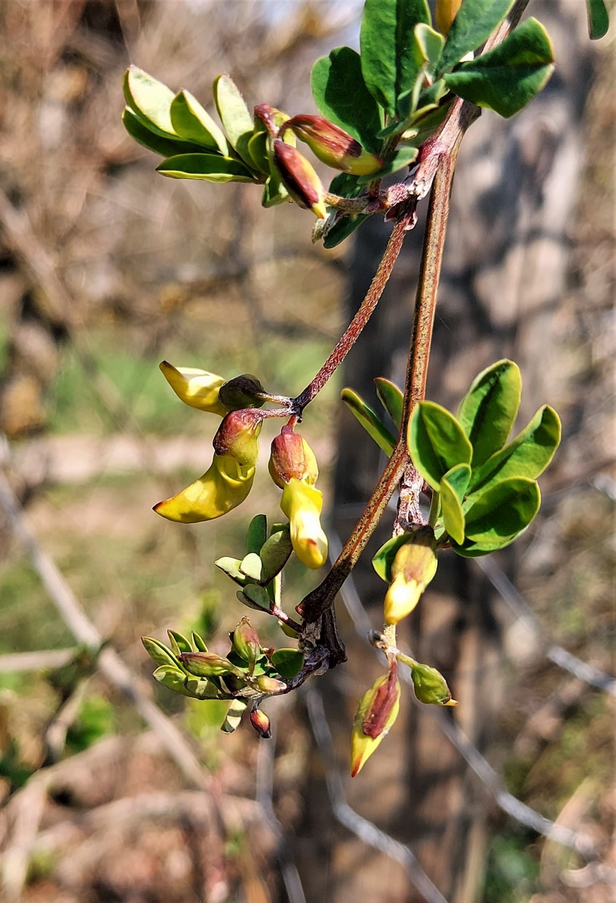Gefiederte Sockenblume, Multberg (Pfungen), (Epimedium pinnatum), Blütezeit: April bis Mai.