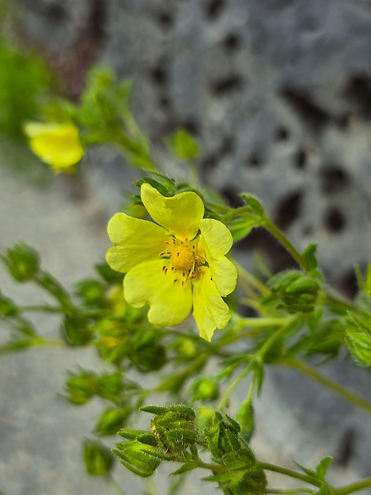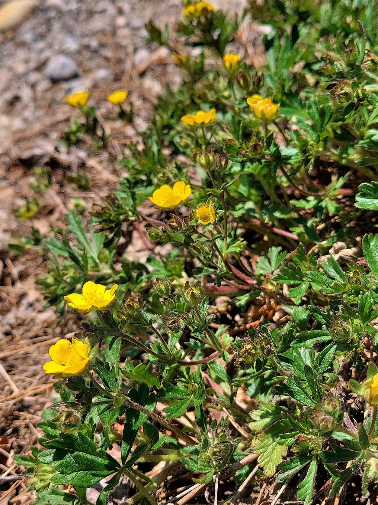 Hohes Fingerkraut (Potentilla recta). Blütezeit: Juni - Juli