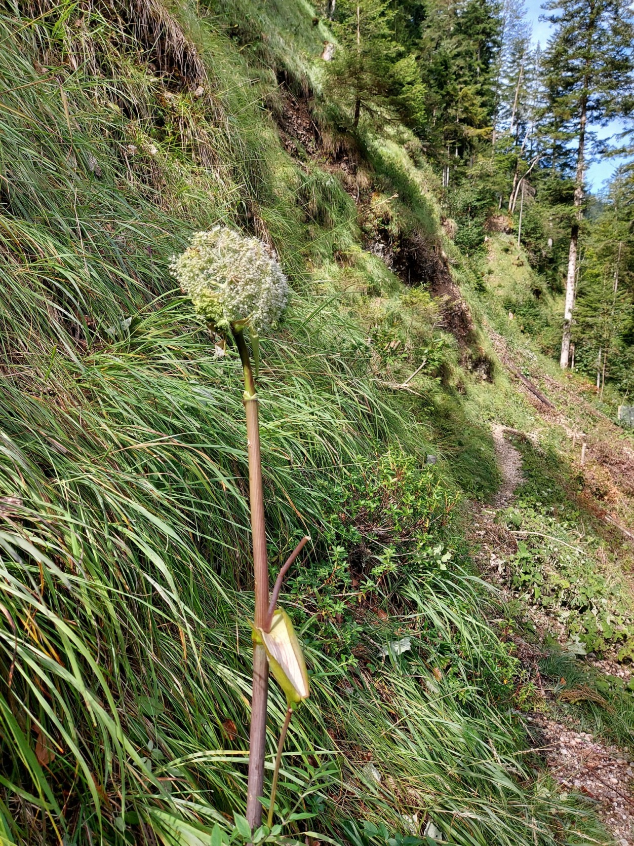 Wilde Brustwurz, Tösstal, (Angelica sylvestris) Blütezeit: Juli bis September.