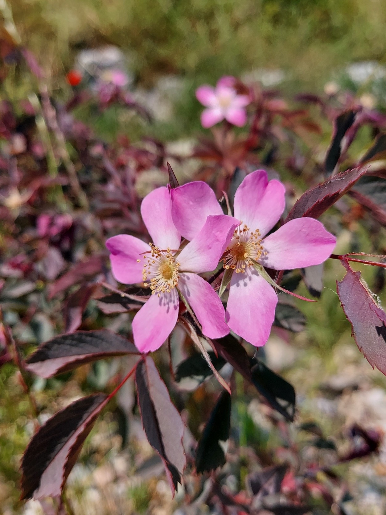 Rotblättrige Rose, Niderfeld (Wülflingen), (Rosa clauca) Blütezeit: Juni - Juli.